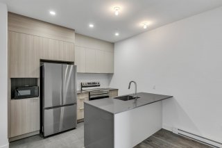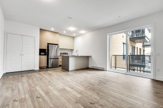 L'unité propose une aire de vie ouverte incluant un salon et une salle à manger spacieux, ainsi qu'une cuisine moderne avec îlot central et grand garde-manger. Tous les électroménagers sont inclus : réfrigérateur, cuisinière, lave-vaisselle, laveuse et sécheuse. Hydro-Québec est incluse dans le loyer.
